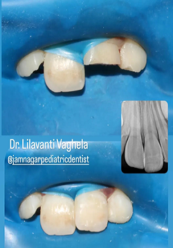 Traumatic dental injuries (TDIs) in pediatric dentistry refer to injuries to the teeth and surrounding oral tissues caused by accidents such as falls, sports, collisions, or abuse. These injuries are common in children due to active play and developing motor skills. TDIs can affect both primary and permanent teeth, and their management depends on the child’s age, type of injury, and stage of tooth development. Injuries may involve enamel fractures, crown or crown-root fractures, luxation injuries (subluxation, intrusion, extrusion, lateral luxation), avulsion, or soft tissue trauma. Primary teeth are managed conservatively to avoid damage to the developing permanent tooth germ—often through observation, smoothing of sharp edges, or extraction when necessary. Permanent tooth injuries require more active treatment such as repositioning, splinting, pulp therapy (e.g., pulp capping, partial pulpotomy), root canal treatment, or replantation in cases of avulsion. Early diagnosis, radiographic evaluation, appropriate emergency management, and regular follow-up are crucial to ensure proper healing, prevent complications like pulpal necrosis or enamel defects in successors, and maintain long-term oral health and function.